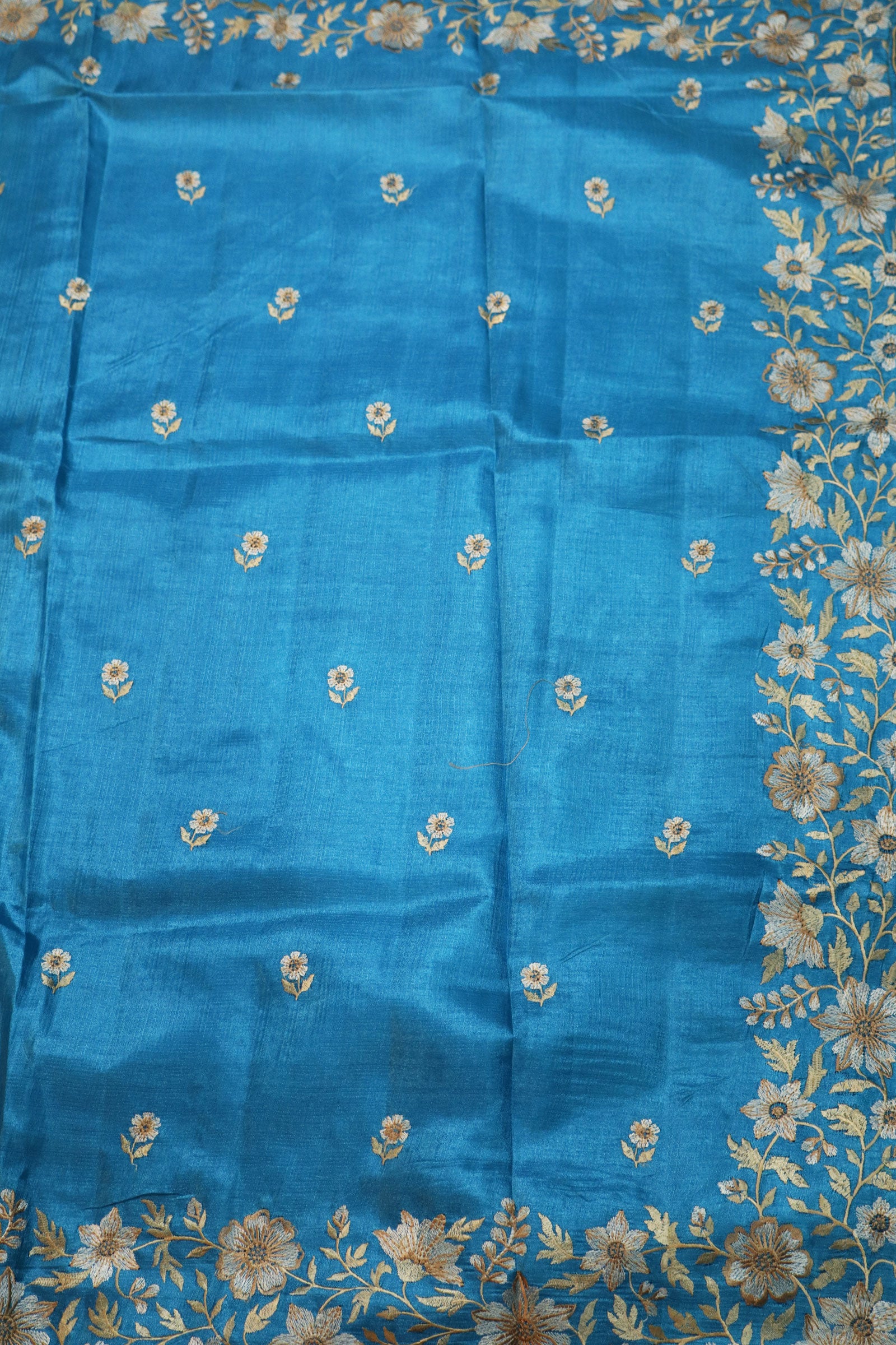 Handloom Turquoise Tussar Silk Embroidered Lightweight Premium Comfortable Elegant Saree