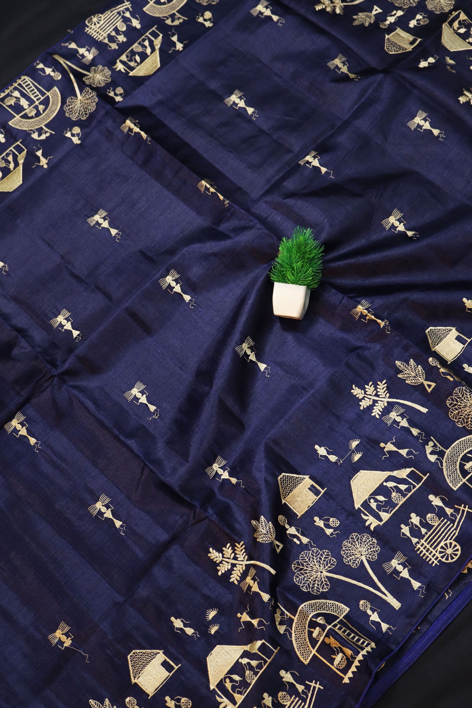 Soft Dark Blue Shade Handloom Tussar Silk Saree Designed For Premium Comfort